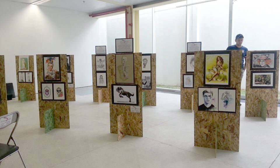 Exposições de desenhos de alunos e professores da Traço Bizarro realizadas em diversos locais.